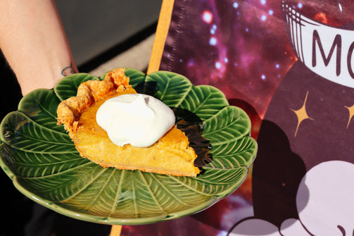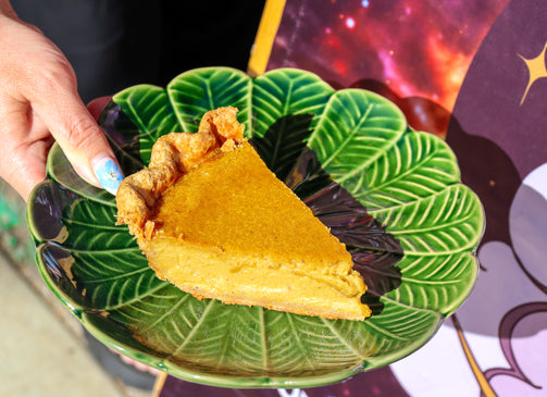 9" pie filled with Kiowa Valley Organics pumpkin and brown butter custard. The crust is made from butter and 100% White Sonora flour grown in Colorado.
