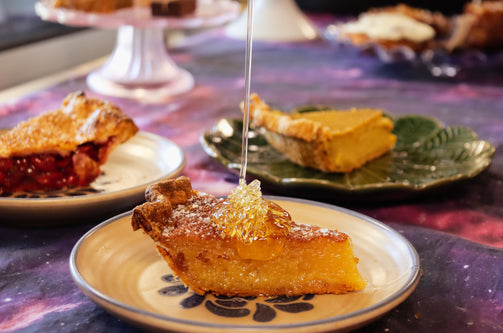 9" pie filled with Bjorn's Colorado Honey custard and topped with flake salt. The crust is made from butter and 100% White Sonora flour grown & milled in Colorado.